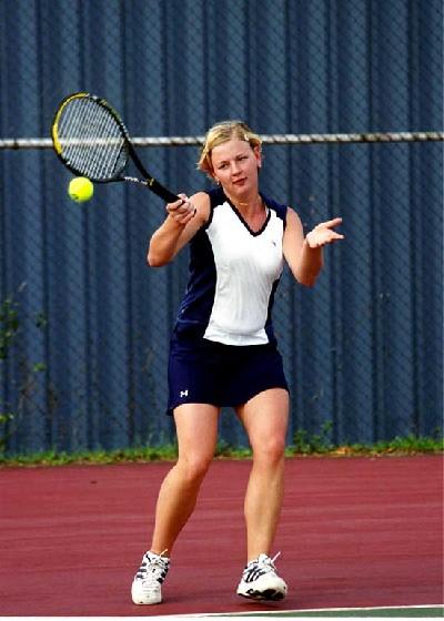 Coach Gifford: She now knows the game is more than just belting the ball as hard as you can...learning a wide reportiore of shots...a baseline player...has learned to use the whole court, may be the most complete player.